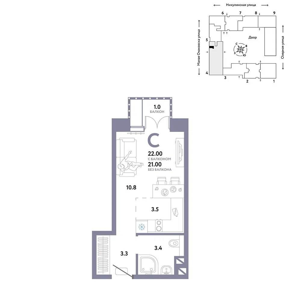 Площадь (общ/жил/кух), м2: 20.9/—/5.7