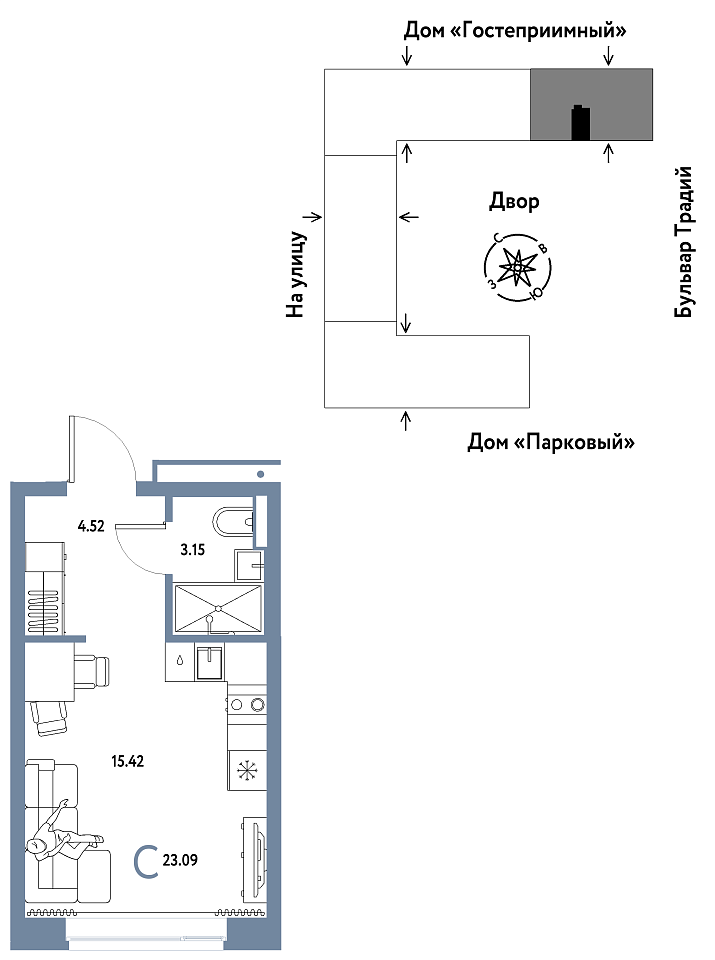 Количество комнат: Студия, 23.09 кв.м.