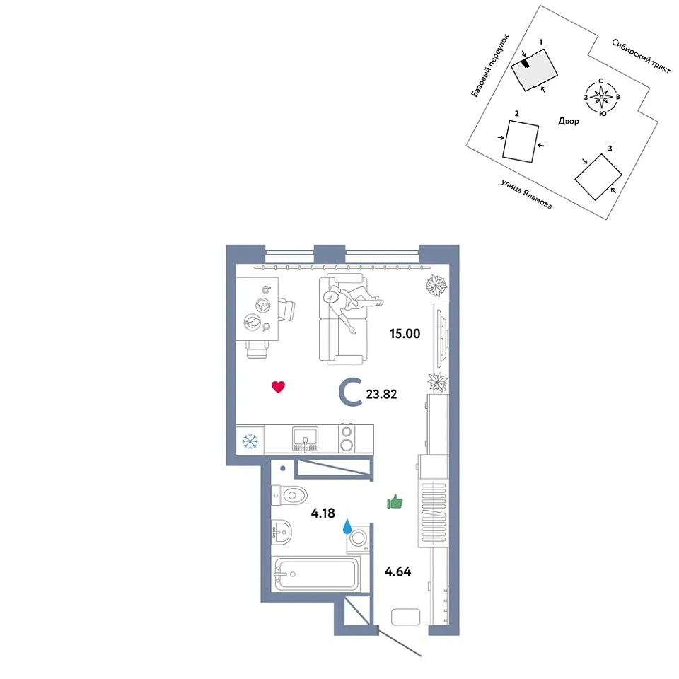 Купить новую квартиру-студию 23.82 м² на 26/32 этаже в ЖК «Сибирский сад», г. Тюмень за 6755556 ₽ | Агентство недвижимости «Вплюсе.Топ» — Недвижимость России