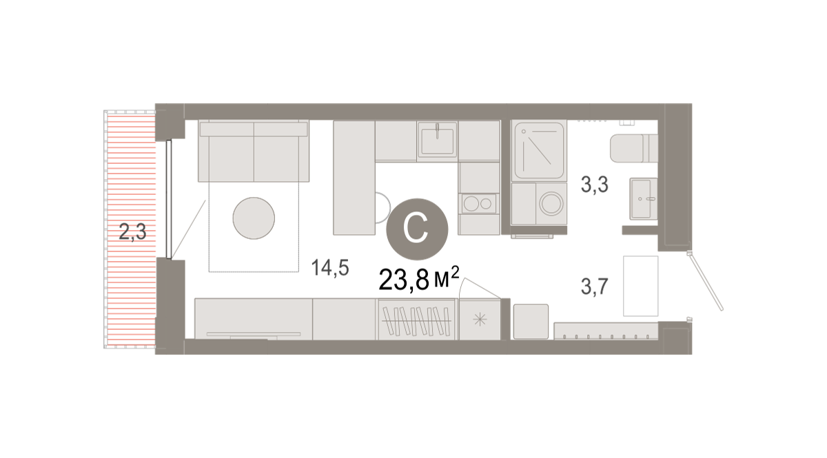Площадь (общ/жил/кух), м2: 23.83/12.43/5.82
