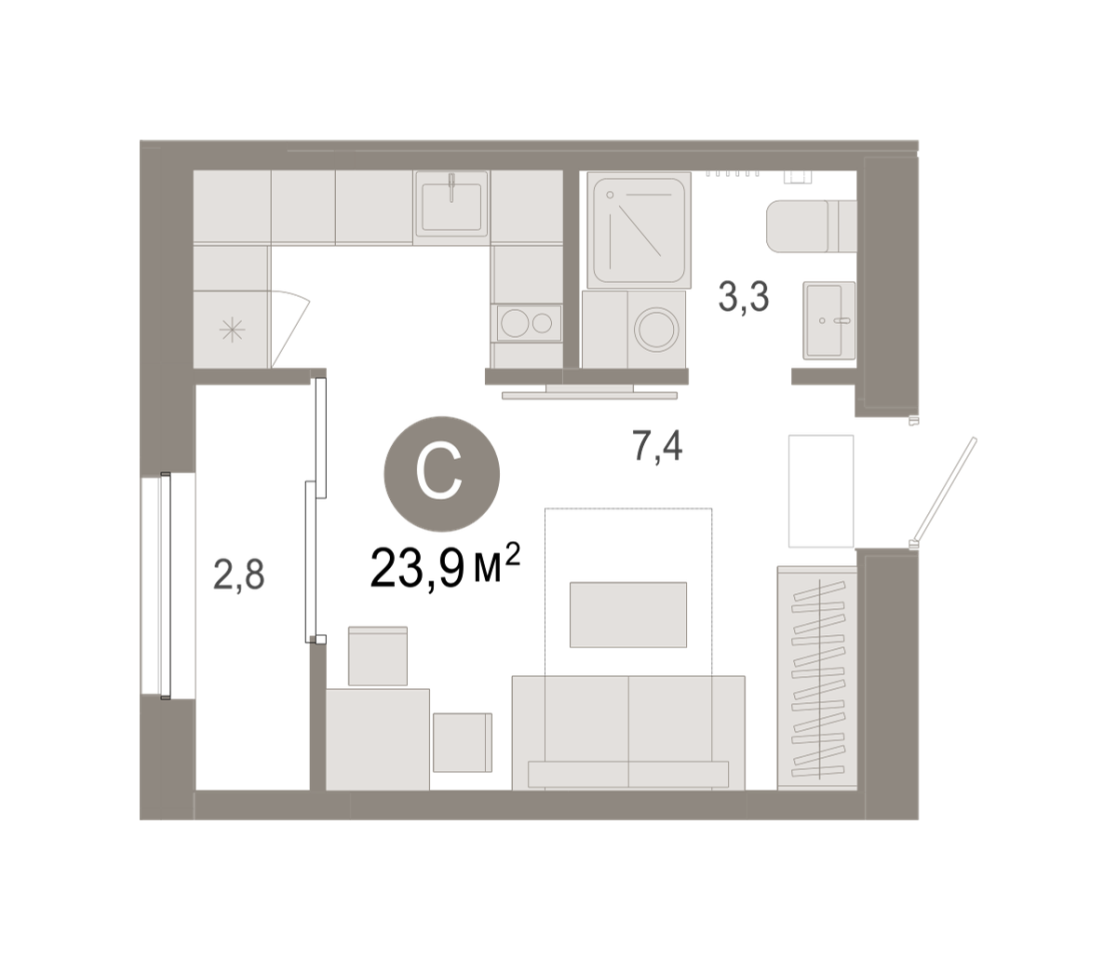 Площадь (общ/жил/кух), м2: 23.83/12.43/5.82
