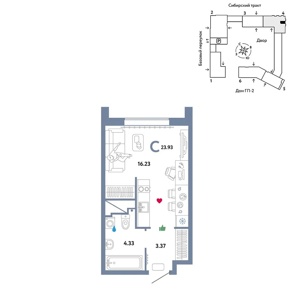 Купить новую квартиру-студию 23.93 м² на 13/32 этаже в ЖК «Сибирский сад», г. Тюмень за 7811111 ₽ | Агентство недвижимости «Вплюсе.Топ» — Недвижимость России