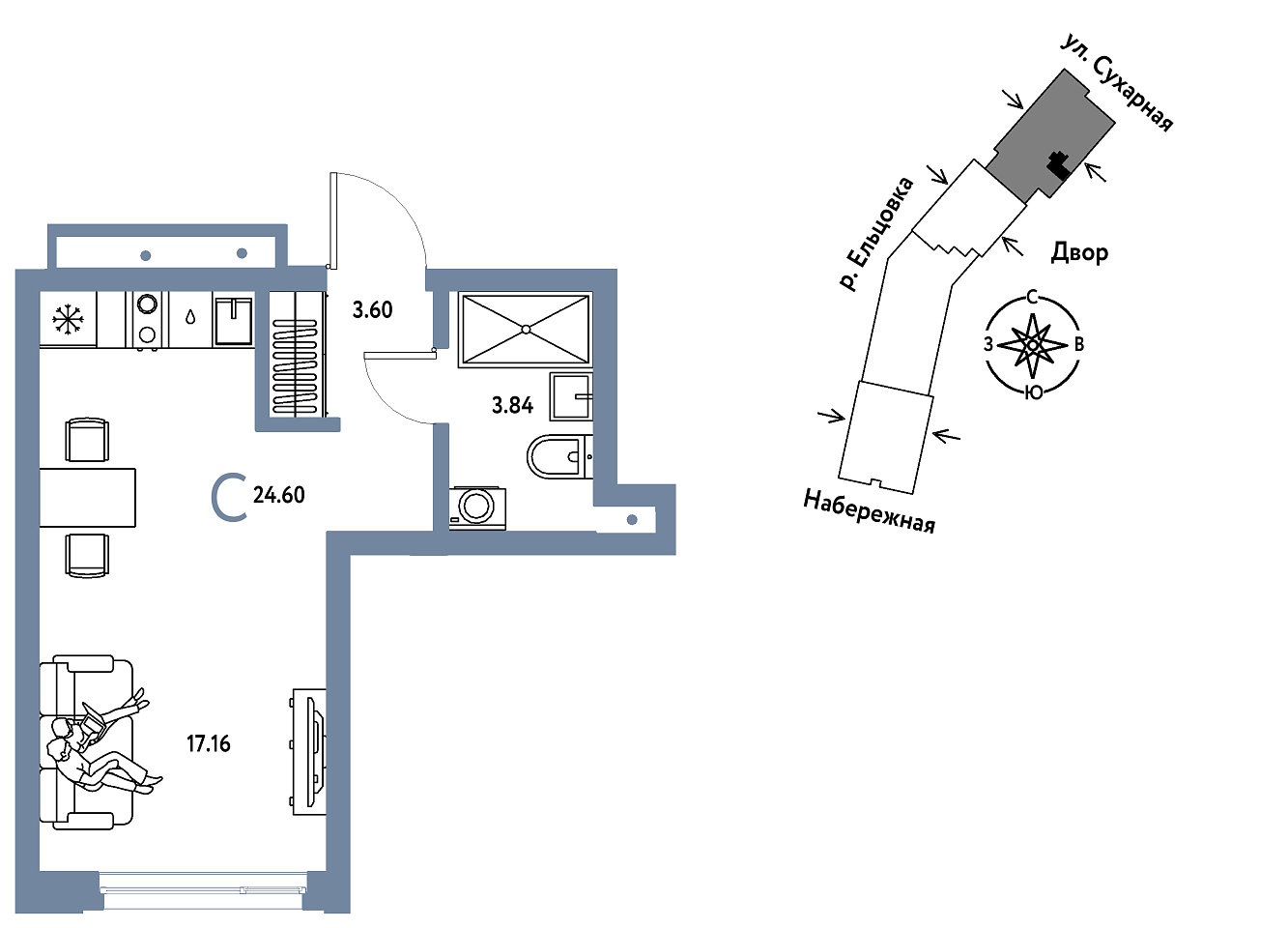 Площадь (общ/жил/кух), м2: 24.6/10.57/6.59