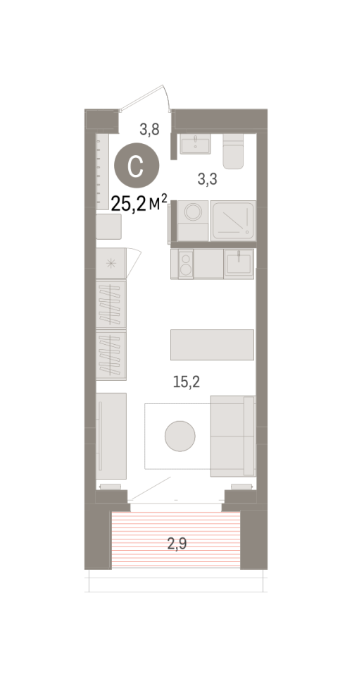 Количество комнат: Студия, 25.16 кв.м.