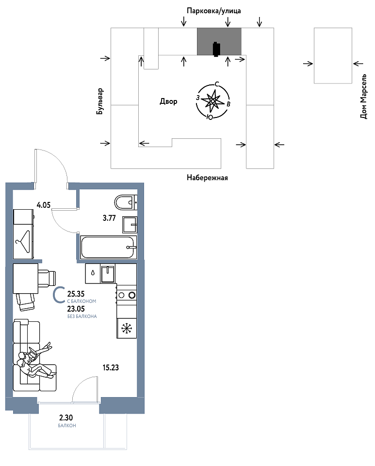 Купить новую квартиру-студию 25.35 м² на 9/24 этаже в ЖК «Европейский берег 2.0», г. Тюмень за 6517241 ₽ | Агентство недвижимости «Вплюсе.Топ» — Недвижимость России