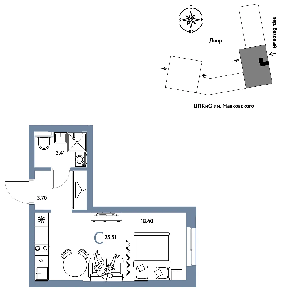 Количество комнат: Студия, 25.51 кв.м.