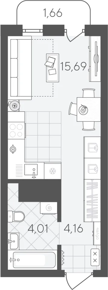Жилая площадь 15.69 м2