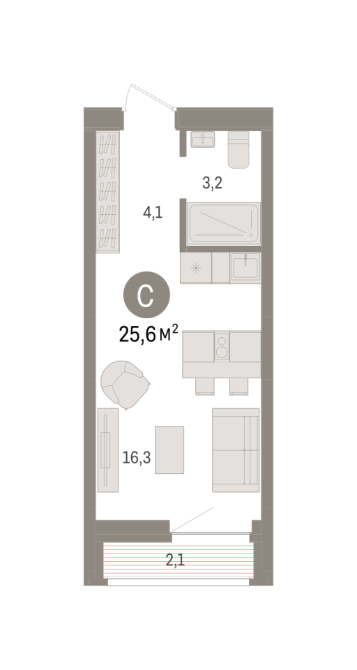 Площадь (общ/жил/кух), м2: 25.6/13.7/6.7