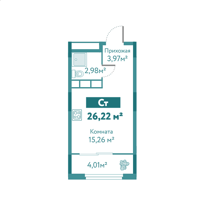 Площадь (общ/жил/кух), м2: 22.5/—/4.21