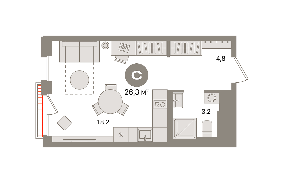 Количество комнат: Студия, 26.27 кв.м.