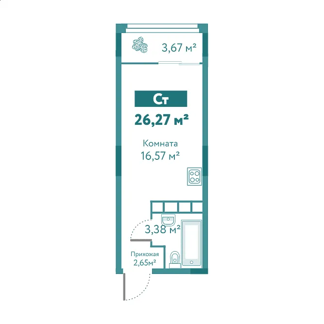 Общая площадь 26.27 м2