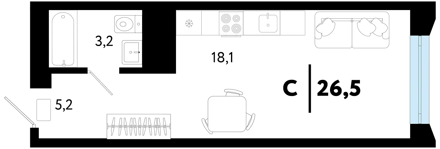 Площадь (общ/жил/кух), м2: 19.82/11.42/2.25