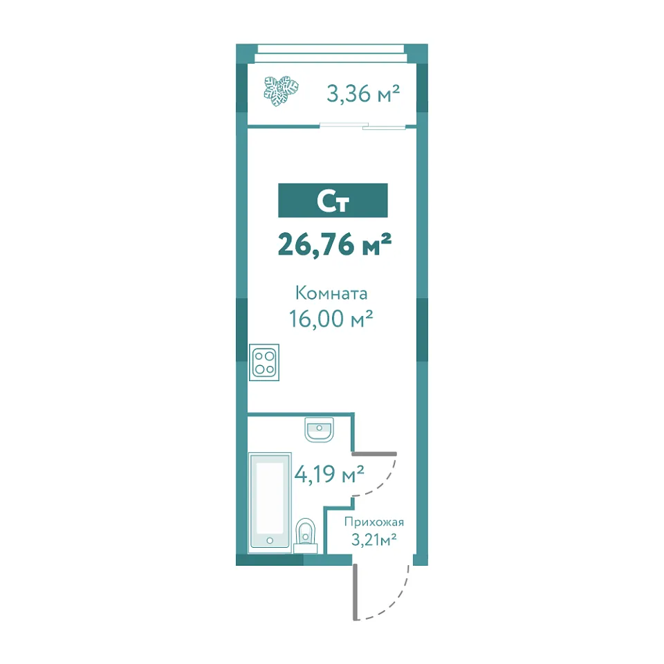 Общая площадь 26.76 м2