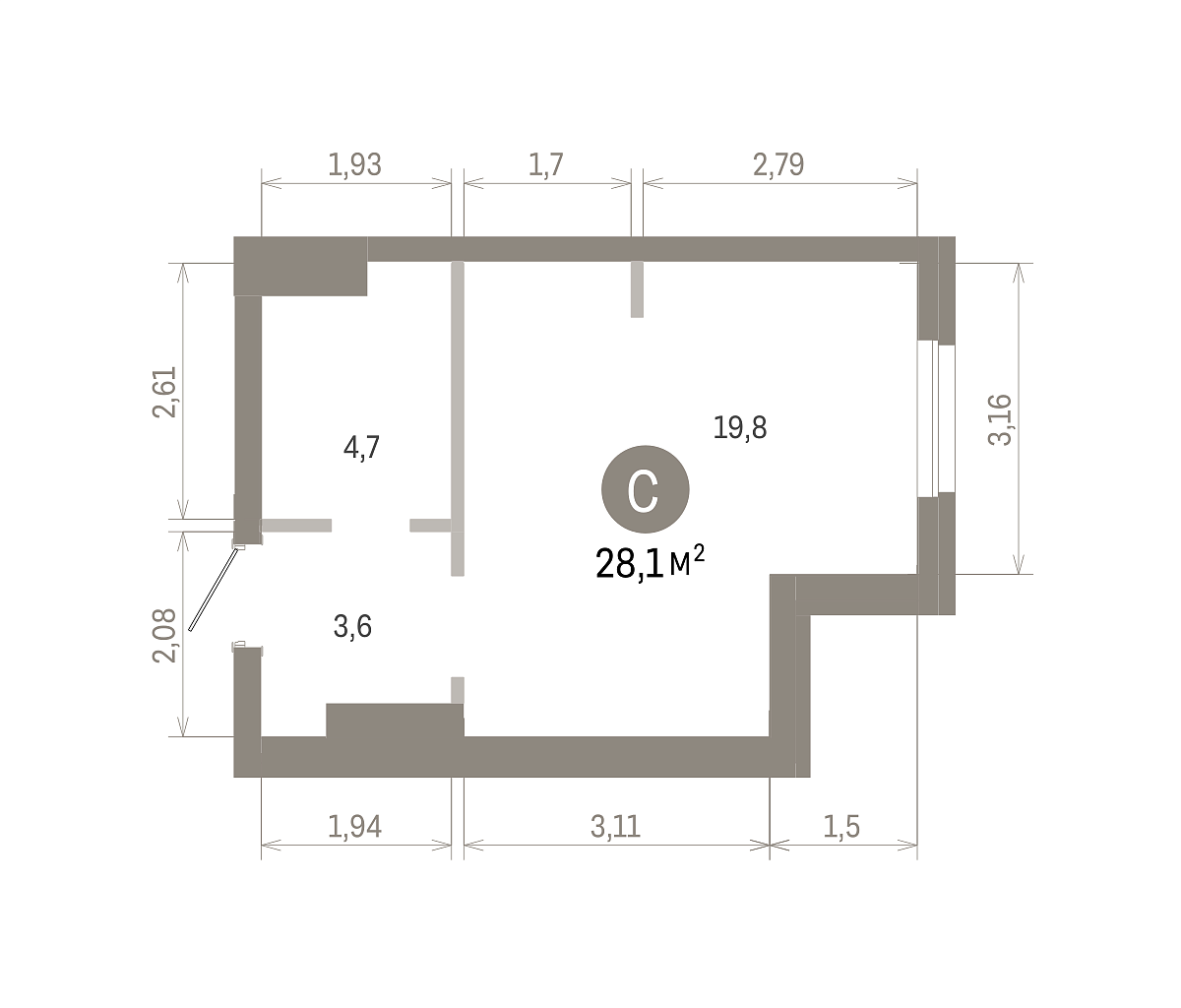 Общая площадь 27.66 м2