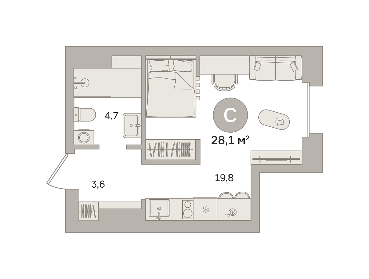 Купить новую квартиру-студию 27.66 м² на 12/24 этаже в ЖК «Квартал «МОНС»», г. Тюмень за 20890000 ₽ | Агентство недвижимости «Вплюсе.Топ» — Недвижимость России