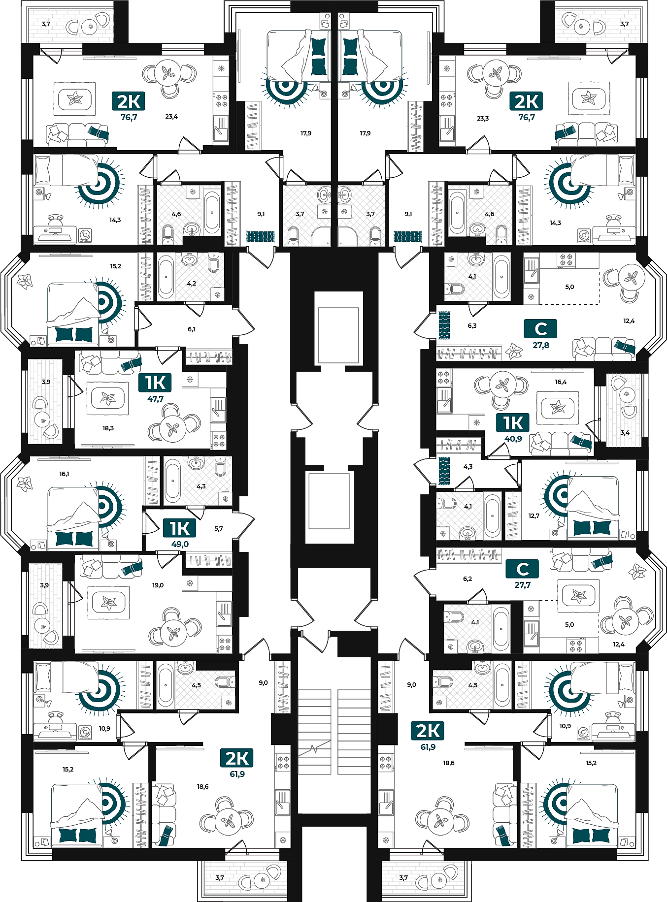 Площадь (общ/жил/кух), м2: 27.8/12.4/—