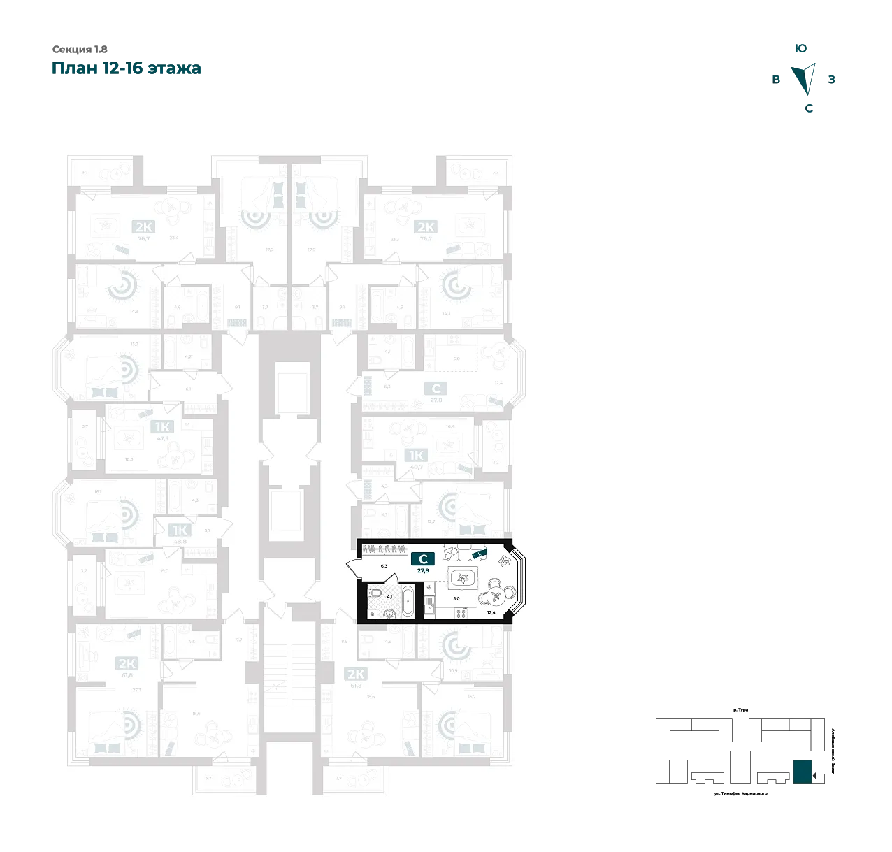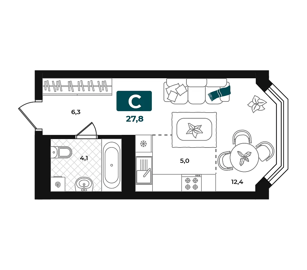 Площадь (общ/жил/кух), м2: 27.8/12.4/—