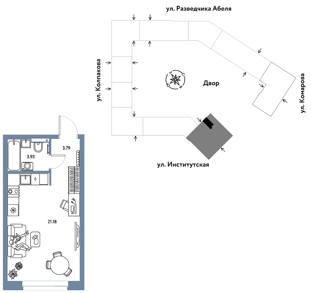 Количество комнат: Студия, 28.9 кв.м.