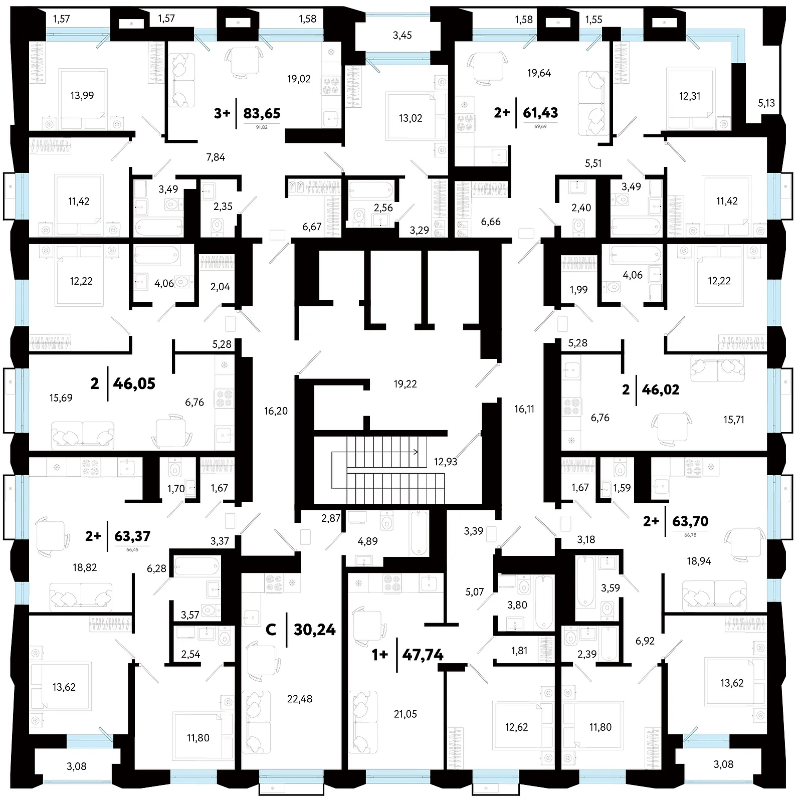 Общая площадь 30.24 м2