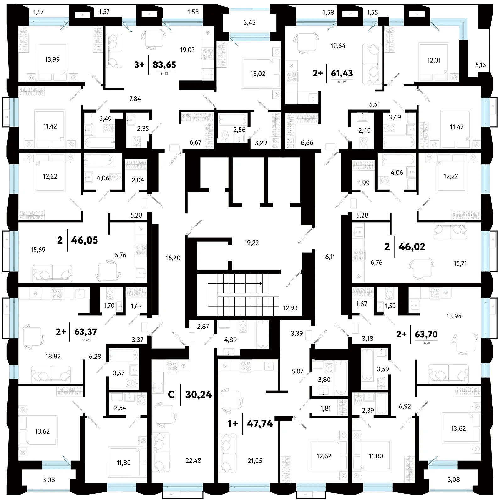 Общая площадь 30.24 м2