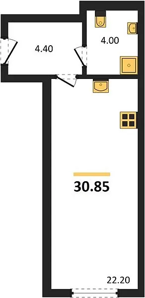 Количество комнат: Студия, 30.85 кв.м.