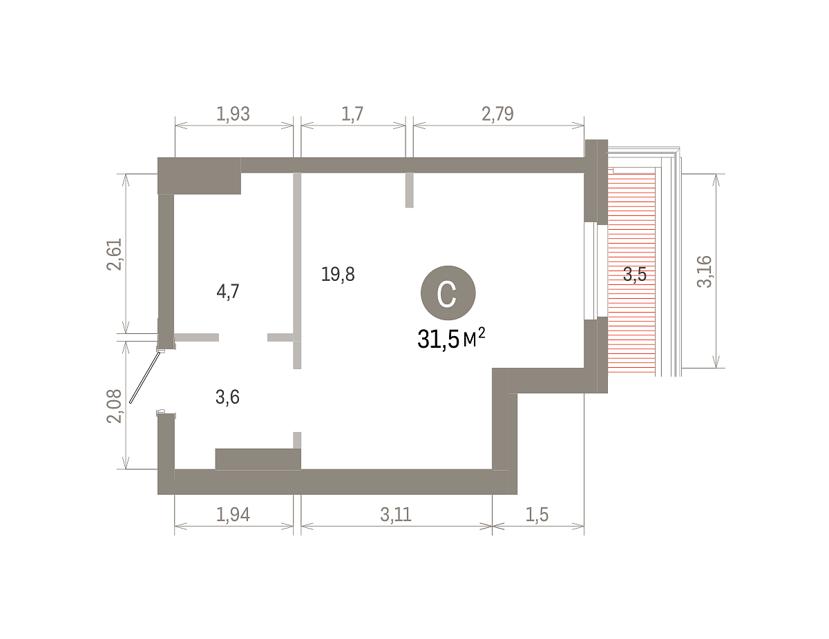 Общая площадь 31.14 м2