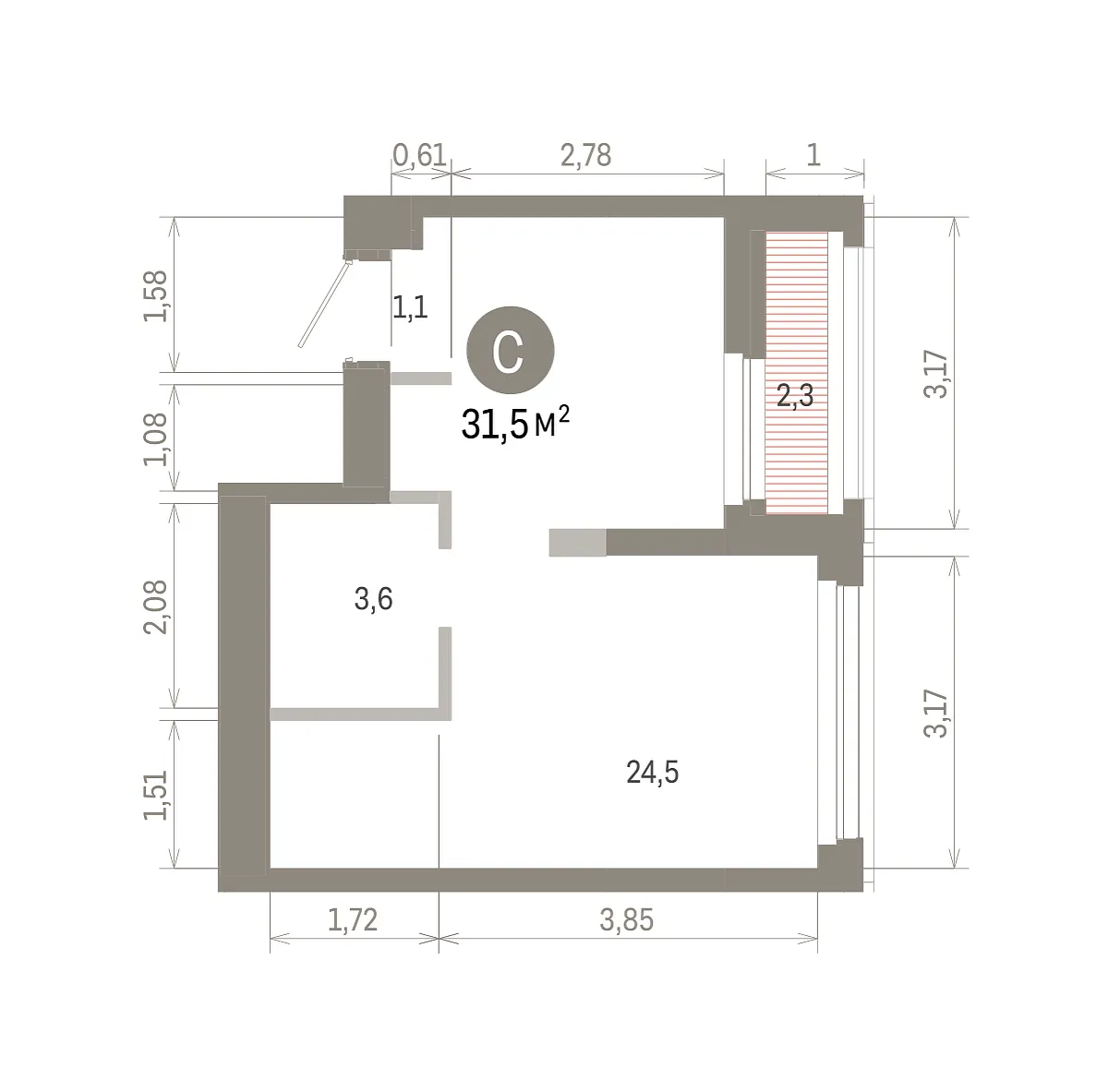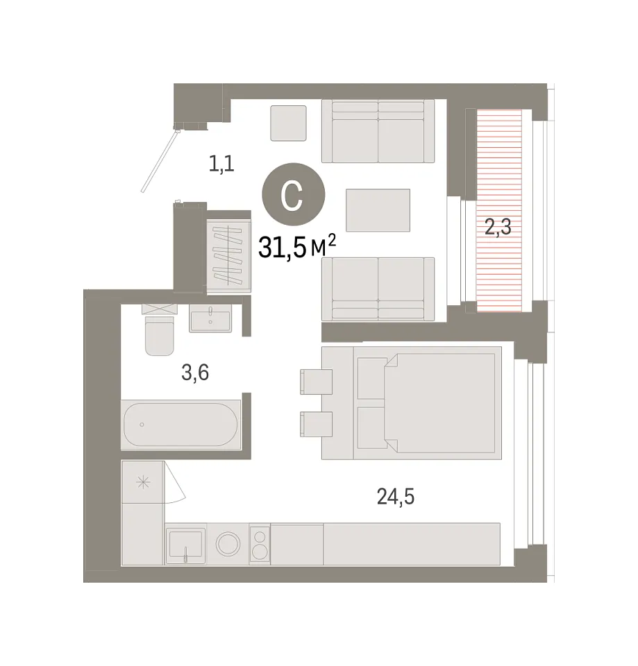 Площадь (общ/жил/кух), м2: 31.41/—/13.11