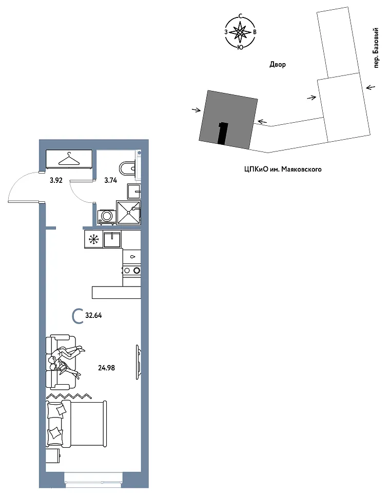 Количество комнат: Студия, 32.64 кв.м.