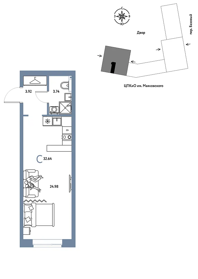 Количество комнат: Студия, 32.64 кв.м.