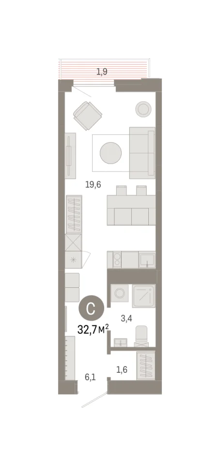 Общая площадь 32.72 м2
