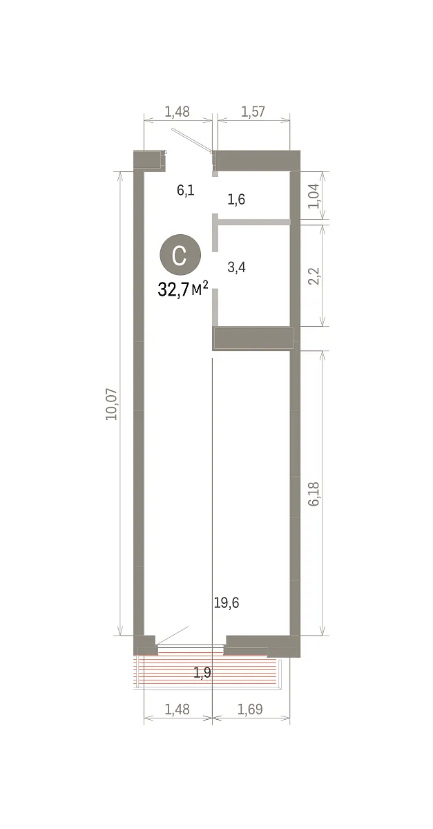 Площадь (общ/жил/кух), м2: 32.72/19.2/8.15