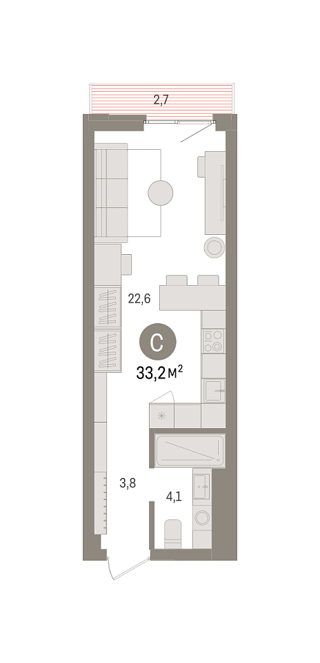 Количество комнат: Студия, 33.2 кв.м.
