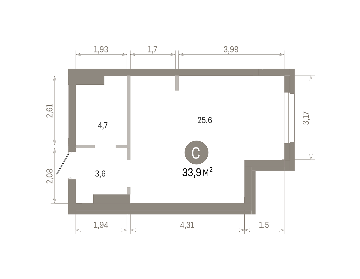 Площадь (общ/жил/кух), м2: 33.44/21.59/7.18