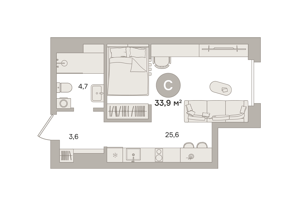 Купить новую квартиру-студию 33.44 м² на 9/24 этаже в ЖК «Квартал «МОНС»», г. Тюмень за 23720000 ₽ | Агентство недвижимости «Вплюсе.Топ» — Недвижимость России