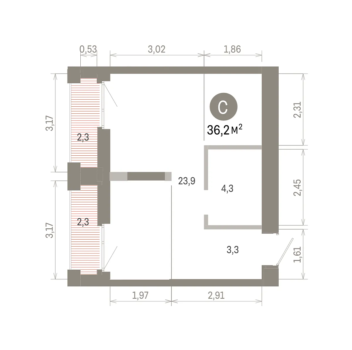 Площадь (общ/жил/кух), м2: 36.18/21.39/5.8
