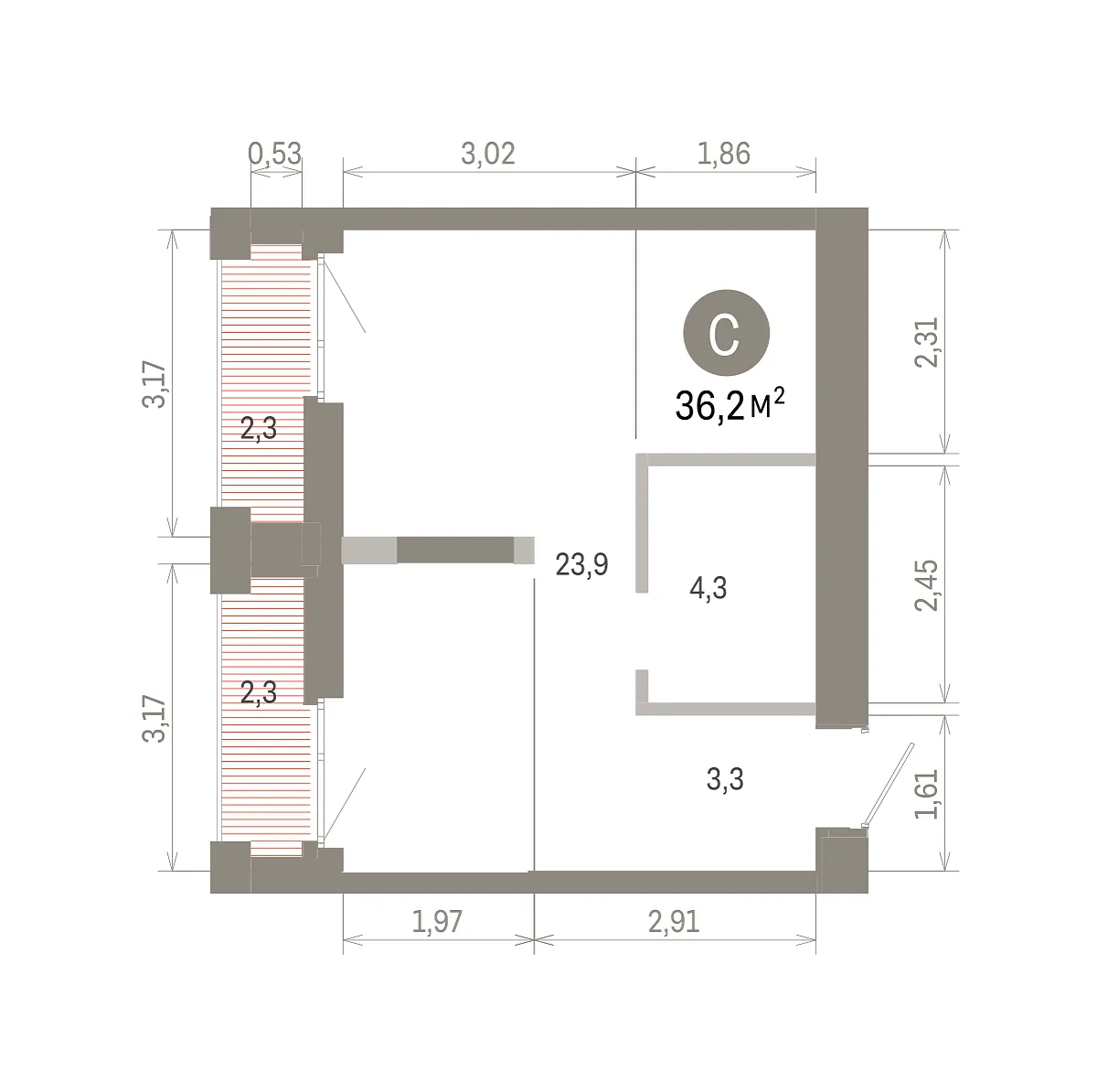 Общая площадь 36.18 м2