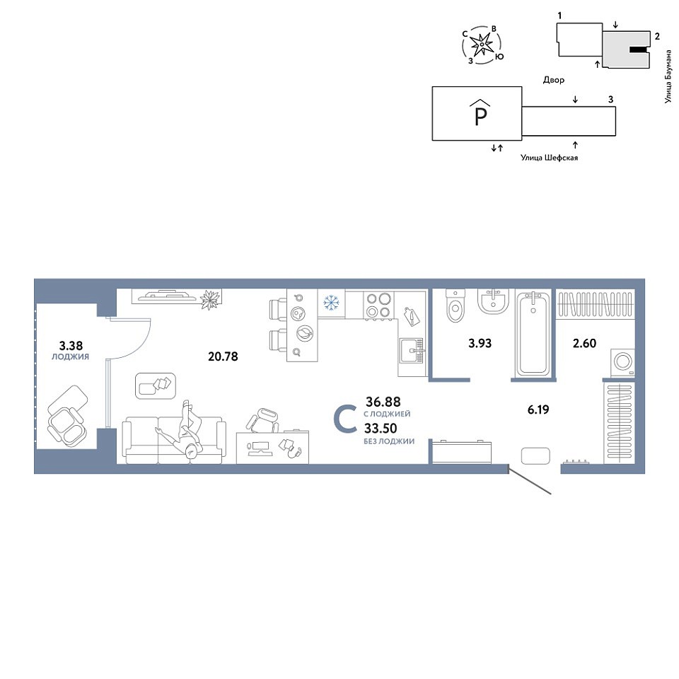 Купить новую квартиру-студию 36.88 м² на 7/24 этаже в ЖК «Страна.Энтузиастов», г. Тюмень за 9616589 ₽ | Агентство недвижимости «Вплюсе.Топ» — Недвижимость России