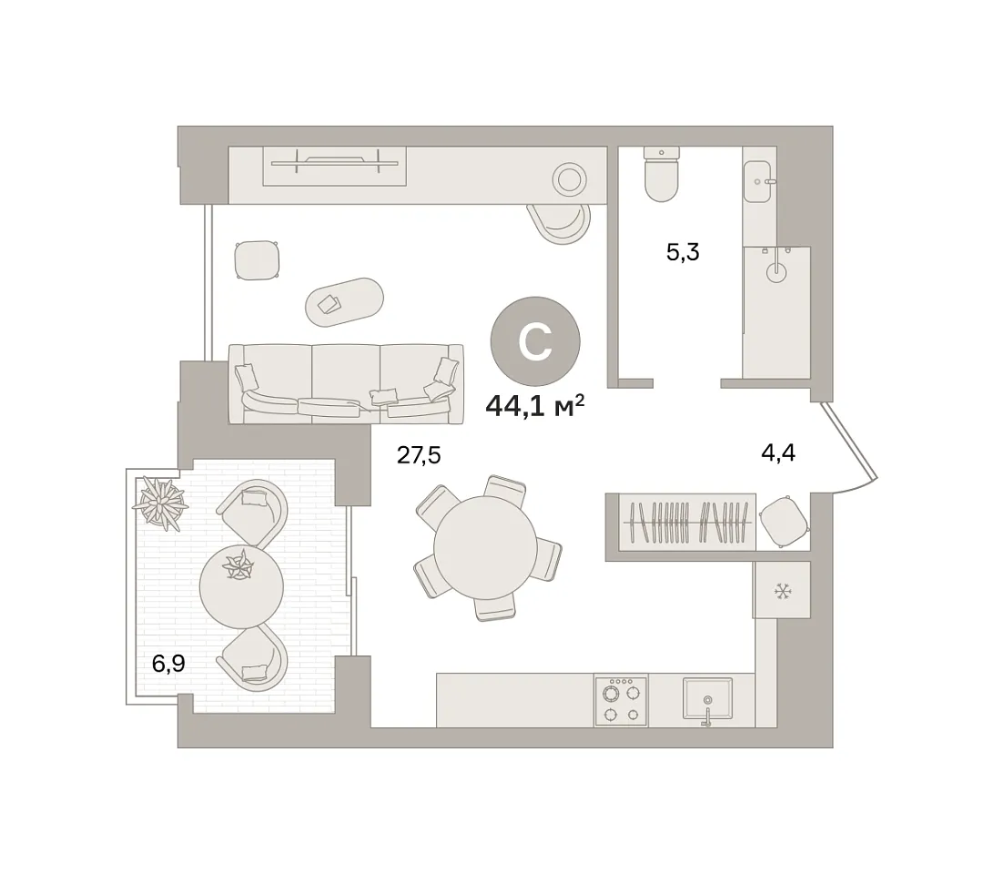 Купить новую квартиру-студию 44.12 м² на 18/27 этаже в ЖК «Квартал «МОНС»», г. Тюмень за 25120000 ₽ | Агентство недвижимости «Вплюсе.Топ» — Недвижимость России