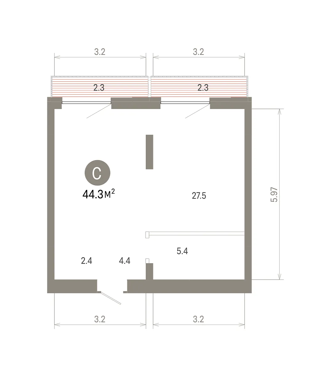 Количество комнат: Студия, 44.28 кв.м.