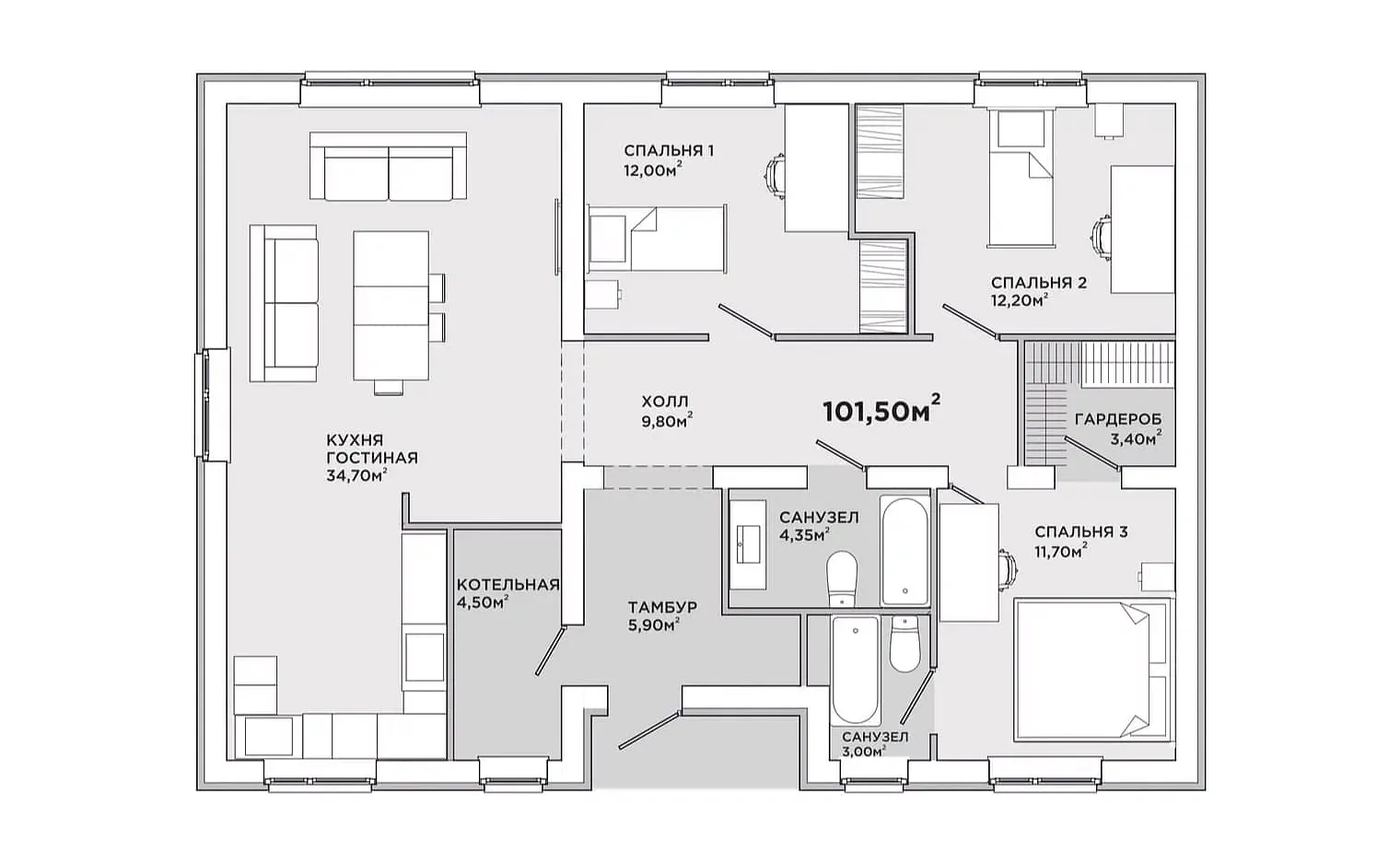 Общая площадь 101 м2
