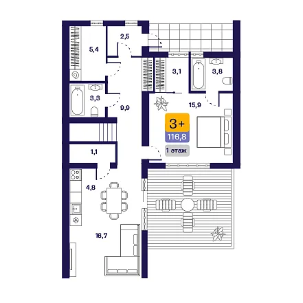 Общая площадь 116.8 м2