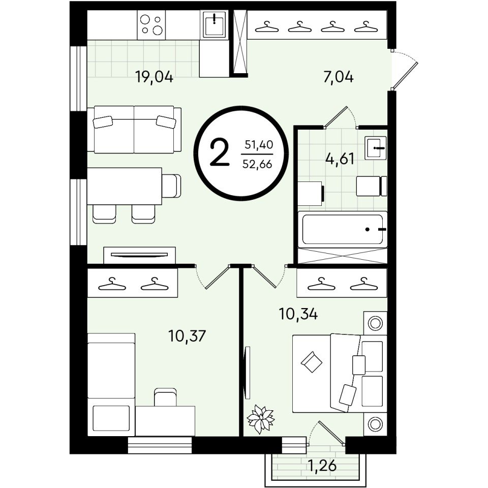 Площадь (общ/жил/кух), м2: 52.66/20.71/—