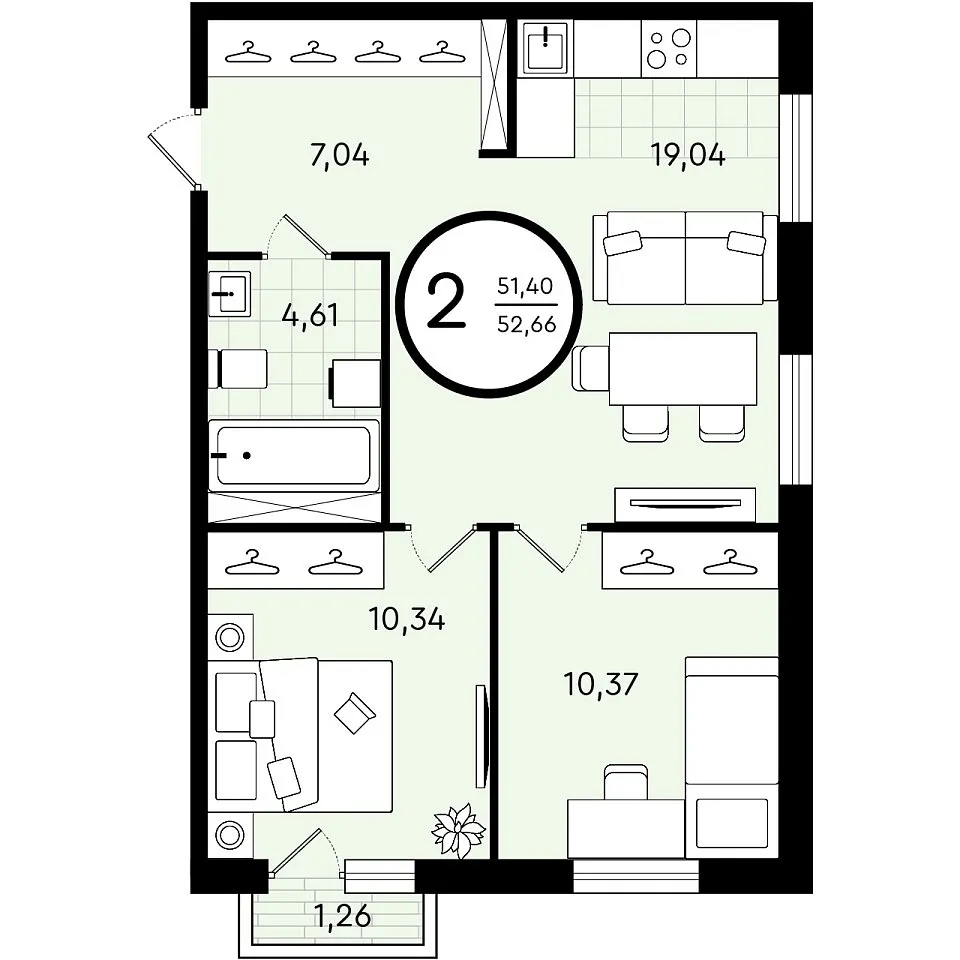 Общая площадь 52.66 м2