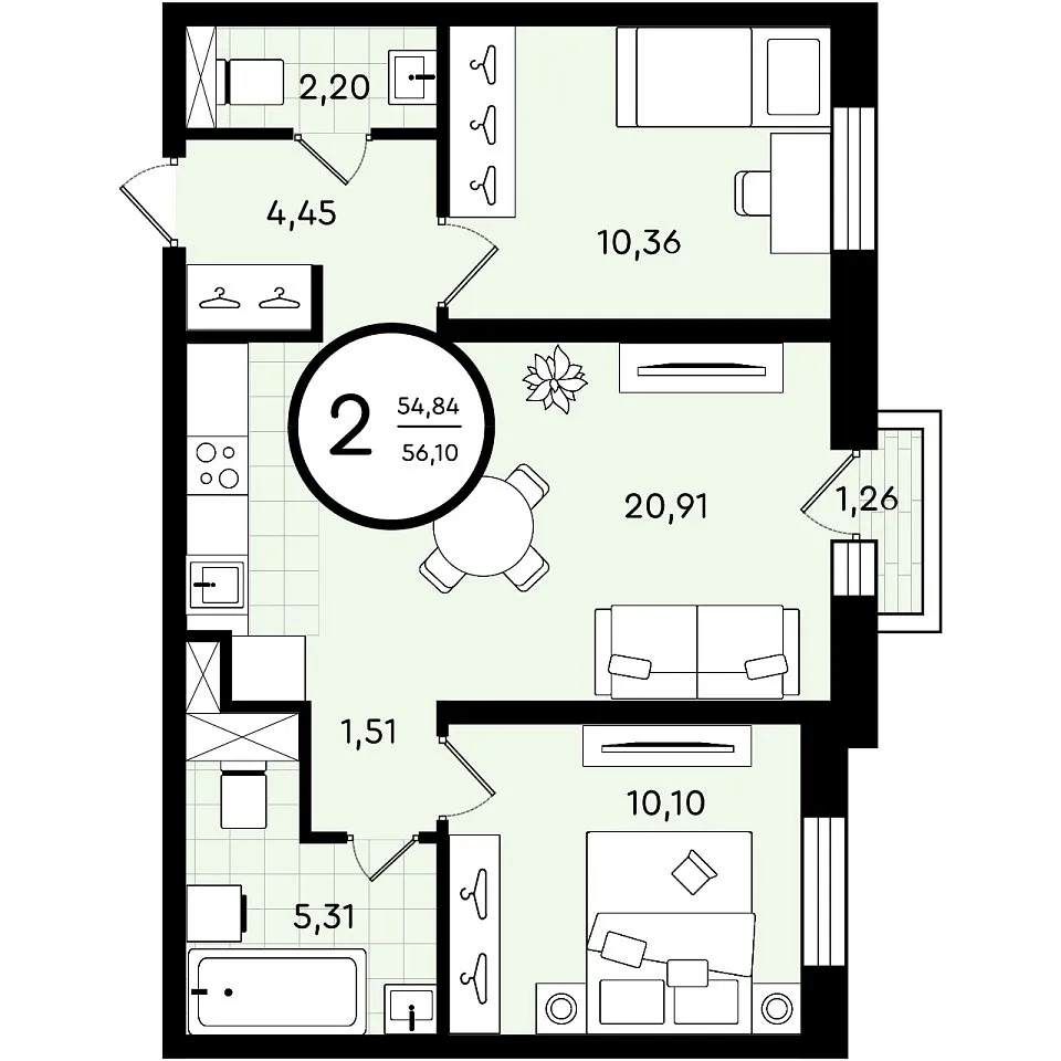 Общая площадь 56.1 м2