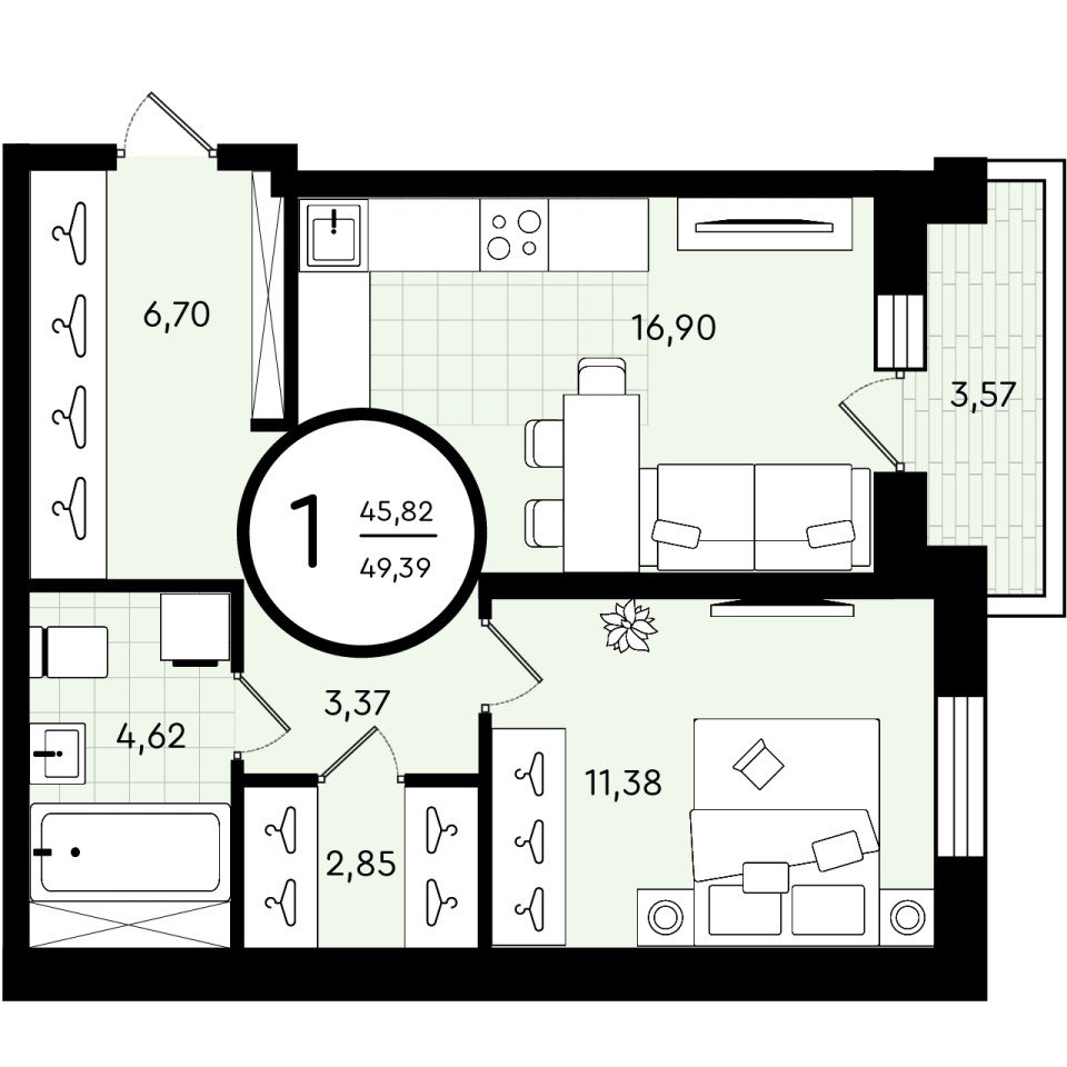 Площадь (общ/жил/кух), м2: 38.94/9.51/—