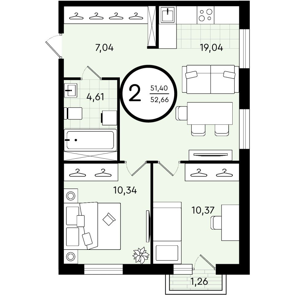 Площадь (общ/жил/кух), м2: 52.66/20.71/—