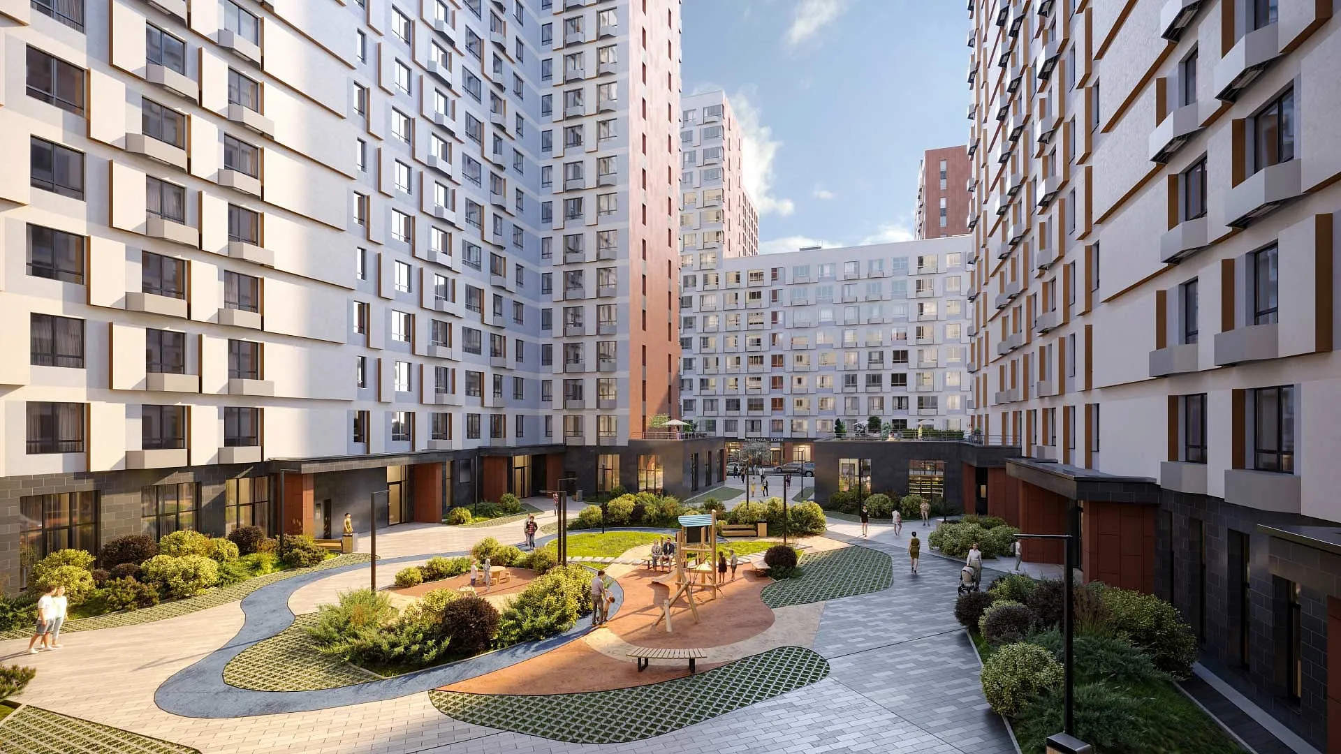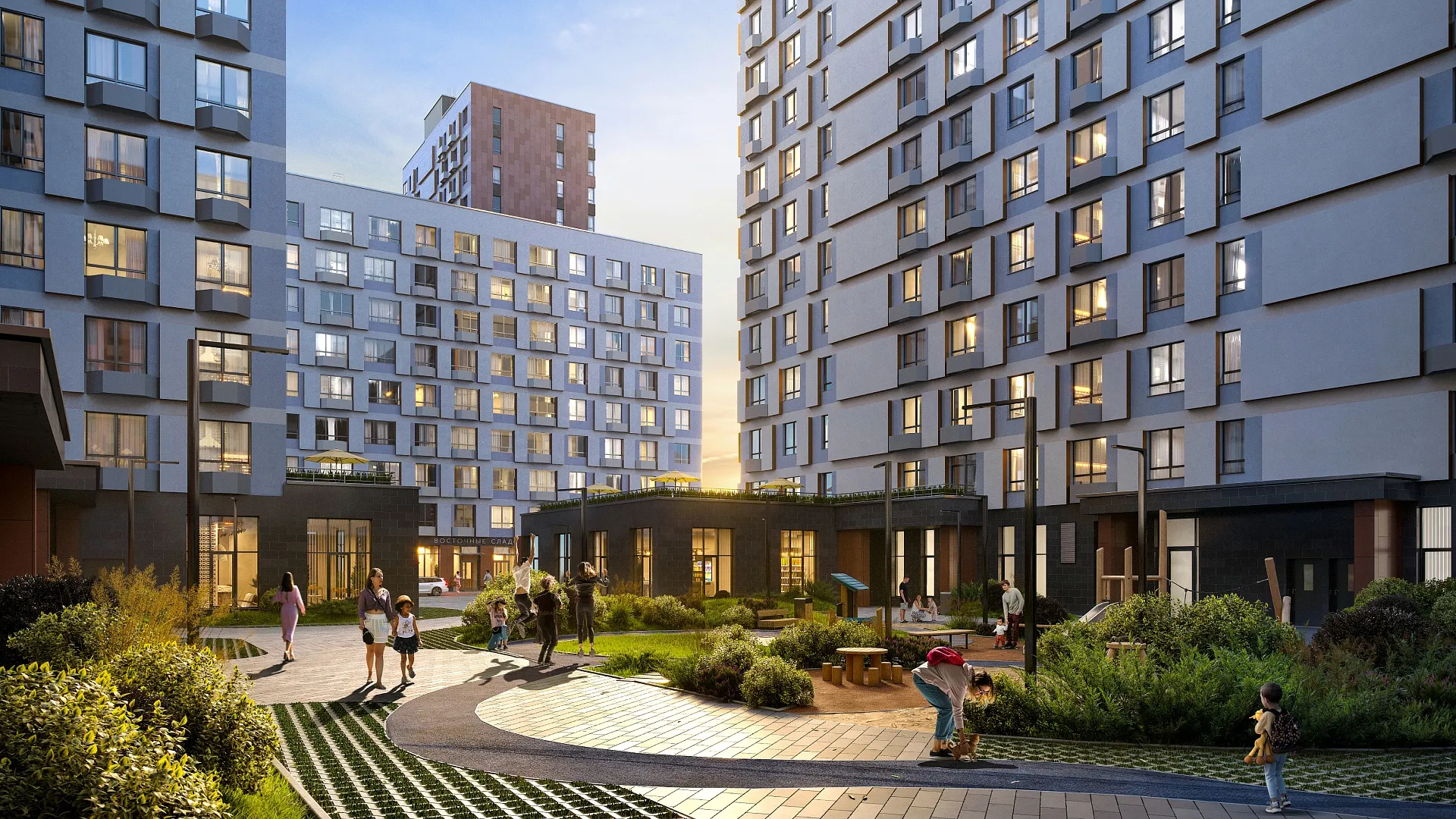 В жилом комплексе будут созданы все условия для общения и активного времяпрепровождения людей всех возрастов и разнообразных увлечений. Его наполнит особенная дружелюбная атмосфера, в которой легко завязываются контакты, взрослые и дети делятся увлечениями, демонстрируют свои таланты.