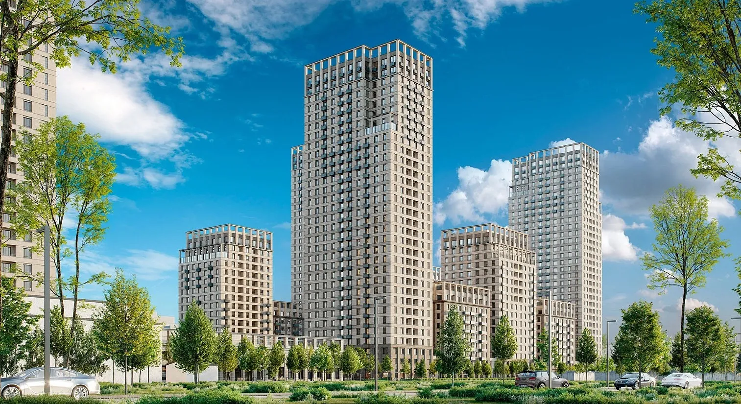 Крупная подрезка в верхней части домов образует запоминающийся силуэт кварталов. Благодаря ей здания будут походить на стильных и современных людей, которые разглядывают интересные и важные городские объекты или общаются друг с другом.