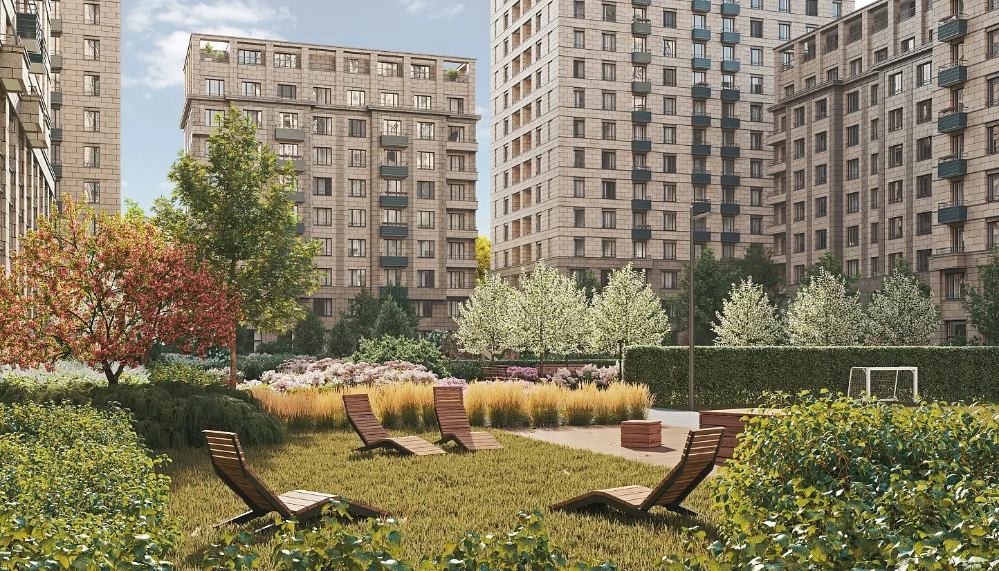 В новом квартале их интерьеры будут отличаться обилием зеркал и контрастами, которые образуют светлый пол и тёмные элементы отделки. Создавая этот дизайн, архитекторы вдохновлялись идеями немецкого модного дома Hugo Boss, известного своим безупречным кроем.
