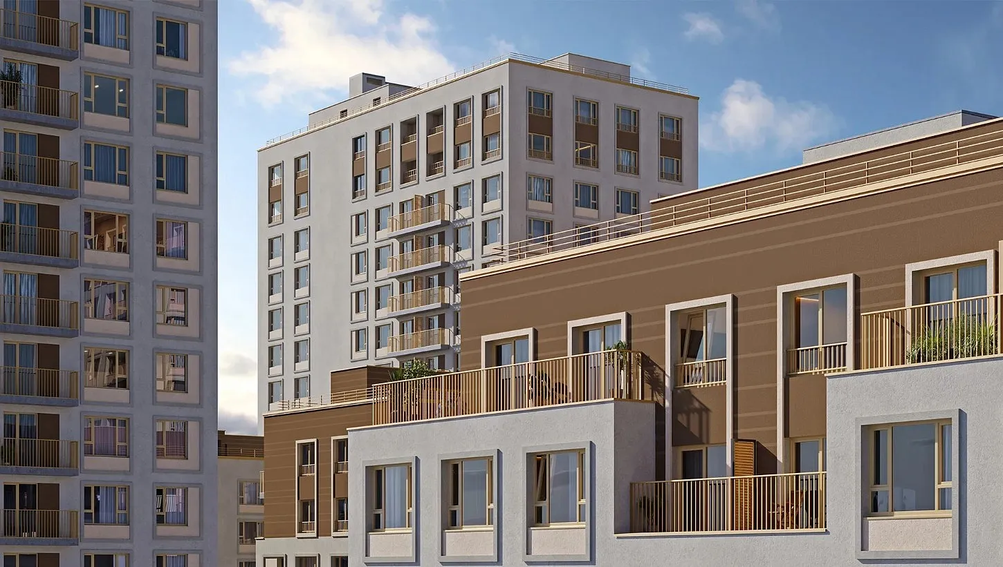 В основе концепции благоустройства — принципы скандинавского натурализма. Это сочетание функциональности, простоты и естественных материалов, которое делает среду удобной для жизни. Здесь важны биоразнообразие, бережное отношение к природе, эргономика и комфорт. В «Траектории» предусмотрено несколько общественных пространств, открытых для всех горожан: встречающий сквер, лесопарк у храма и событийный сквер между домами. Когда захочется тишины и уединения, можно устроить прогулку во внутренних дворах: в них нет машин и посторонних, зато много зелени, света и мест для отдыха. Главное общественное пространство «Траектории» — событийный сквер в центре квартала. Это пространство для встреч с соседями, локальных праздников и вечерних прогулок. Для ценителей спокойного отдыха будут установлены качели, обустроены газоны с гамаками и расставлена уличная мебель. В центре появится искусственный водоём: лёгкое журчание воды и игра солнечных бликов напомнят о прогулках на природе. Провести время активно и с пользой для здоровья можно на спортивной площадке с брусьями и уличными тренажёрами. Рядом разместятся столы для настольного тенниса. Также будет обустроено детское пространство для игр и тренировки воображения: батуты, тоннели и абстрактные формы. На въезде в квартал спроектирован прогулочный сквер — зелёное пространство с тенистыми тропинками, где можно расположиться с книгой, погулять с собакой или запланировать короткую утреннюю пробежку.